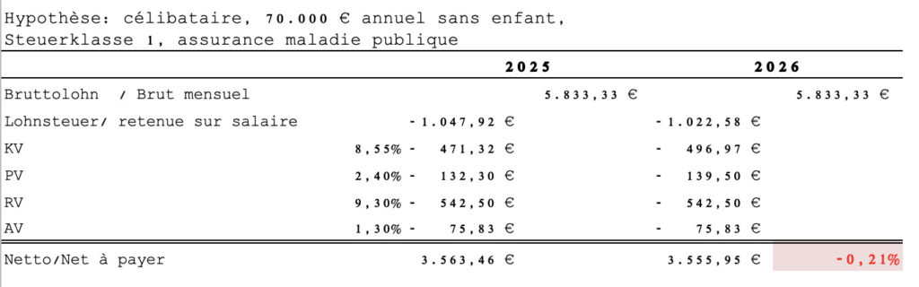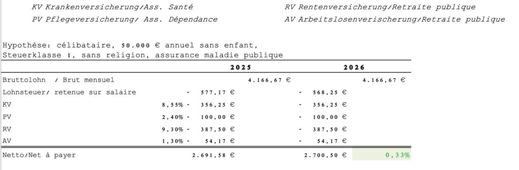 ↪️ la hausse des plafonds sociaux dits Bemessungsgrundlagen peut imposer une charge plus lourde aux hauts revenus, ce qui peut réduire le net effectif malgré les allègements fiscaux.